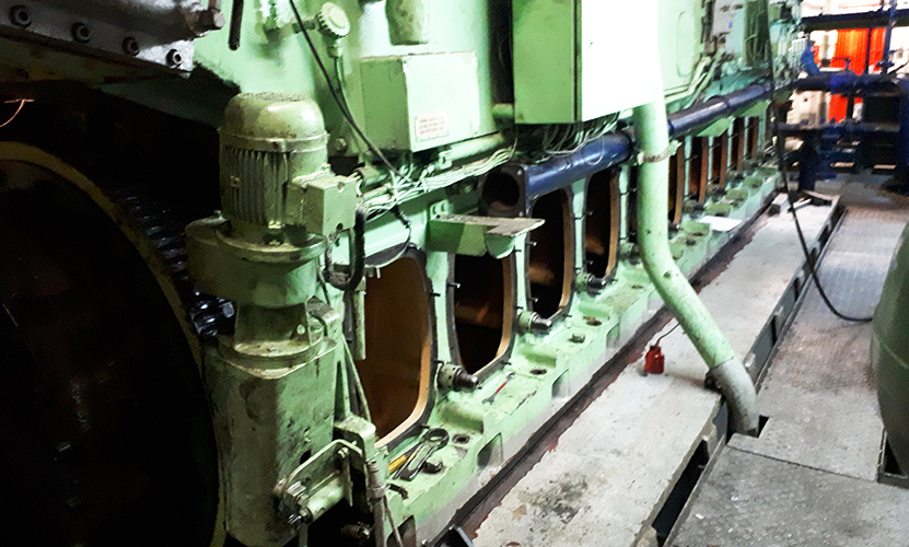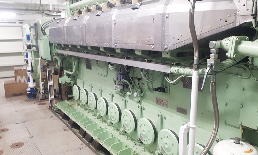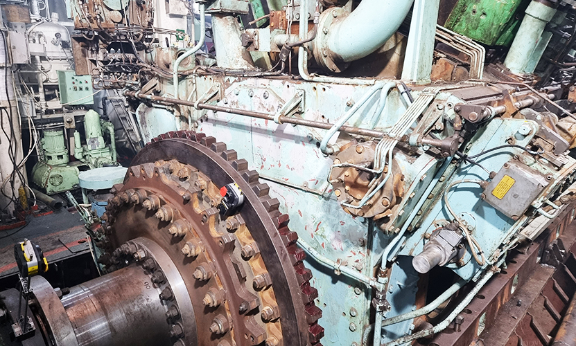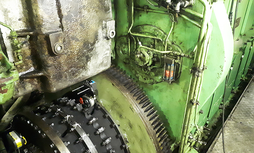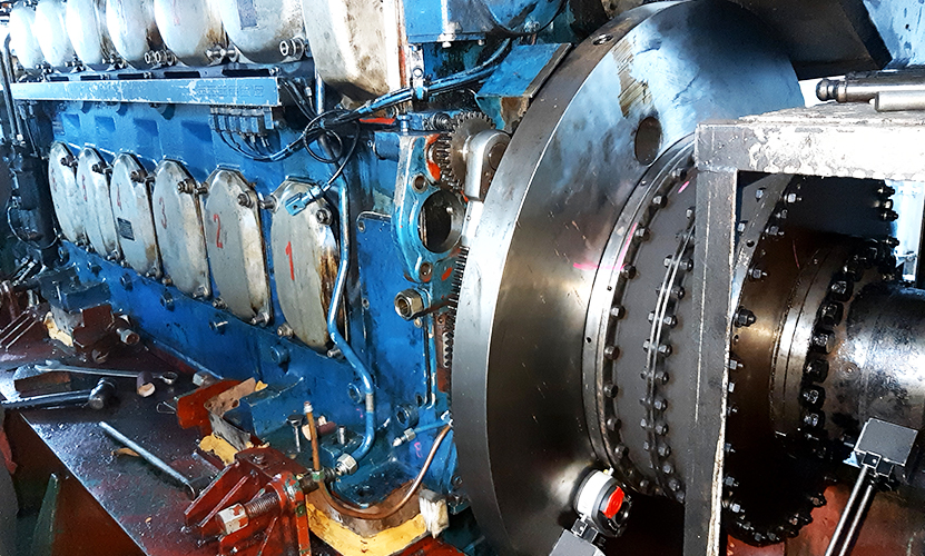 Alignment of the propeller shaft and the gearbox is carried out with shaft alignment equipment, with measuring units mounted on either side of the coupling. If the ship is in water, the Horizontal program must be used, because it does not use the electronic inclinometers, which are used in the EasyTurn™ program (the inclinometers are affected by the ship’s movements in the water). The result of the measurement shows how to shim and adjust the gearbox to get the drive line straight.