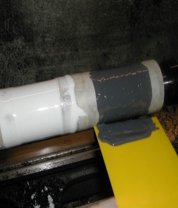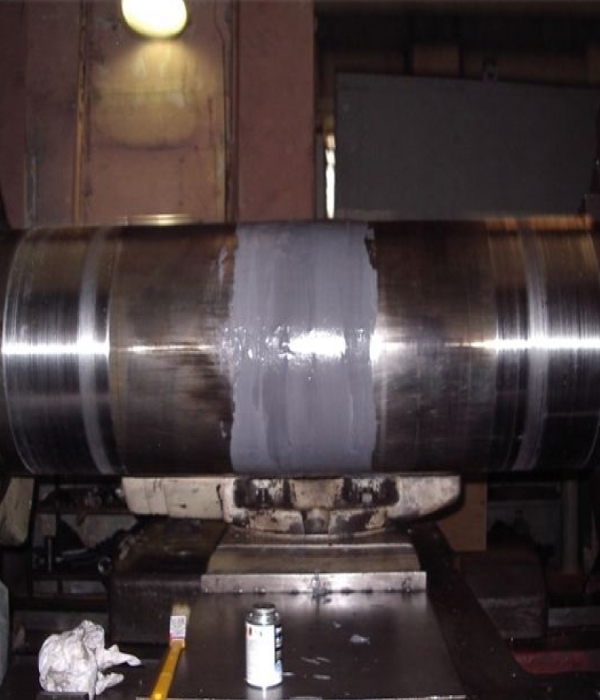 The parts are then cleaned and degreased, and a thin layer of a suitable epoxy adhesive forced into the rough surface finish. The shaft can be turned at a low speed and further adhesive applied with a putty knife to a depth slightly above the desired level. After the adhesive has cured for 12 hours, the repair can be machined to the required dimensions.